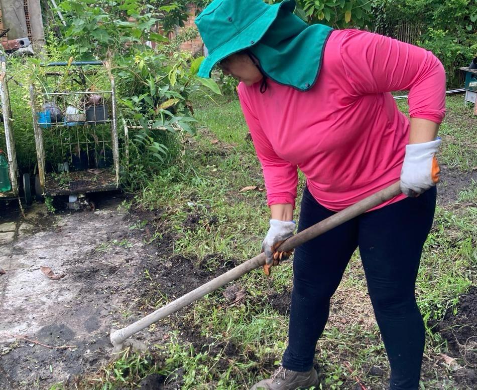 “Eu não sabia nada sobre plantar ou compostagem. Aprendi tudo nas oficinas e hoje tenho um quintal sustentável, com abelhas nativas, frutíferas e plantas medicinais. O que produzo aqui me alimenta, gera renda e ainda ensino outras pessoas sobre educação ambiental”, conta.