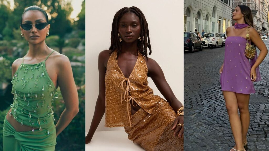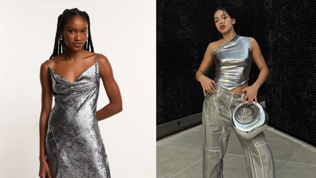 Em acabamentos foscos, tecidos amassados ou misturados a malhas e algodões, o brilho deixa de ser figurino e passa a ser linguagem.