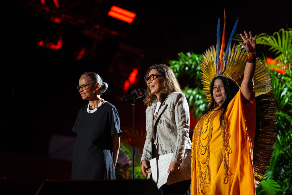 Ao final, Marina Silva, ministra do Meio Ambiente, e Sônia Guajajara, ministra dos Povos Indígenas, subiram ao palco ao lado da primeira-dama, em um momento simbólico que reforçou a união entre política, meio ambiente e ancestralidade.